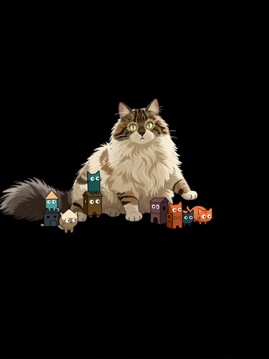 Discover Cat in this enchanting page from Prince's A-Z adventure. Prince the fluffy cat, regal and wide-eyed, discovers friends everywhere with a tail like a cloud. Perfect for young readers ages 3-8.