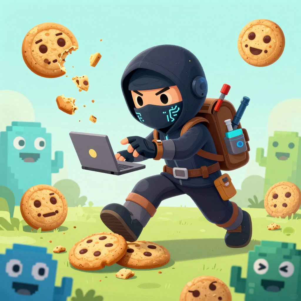 Discover Cookies in this enchanting page from Mark the Ninja Acrobat Engineer's A-Z adventure. Mark the ninja dodges giggling cookie monsters, zapping crumbs into sweet, smiling snacks! Perfect for young readers ages 3-8.