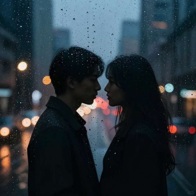 Discover Desire—two silhouettes behind in this enchanting page from Adult ABCs's A-Z adventure. Two shadows huddle near a rainy window, city lights glowing like tiny stars. Perfect for young readers ages 3-8.