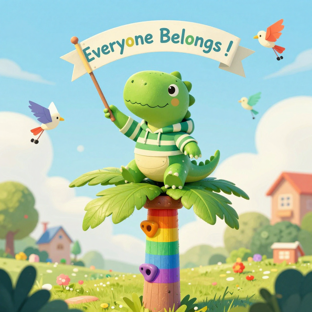 Discover Flag in this enchanting page from Pipkin's A-Z adventure. Pipkin waves a tiny banner from the rainbow flagpole as paper birds with wheelies soar by, shouting, “Everyone belongs!” Perfect for young readers ages 3-8.