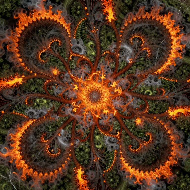 In this enchanting page from Clianthus's A-Z adventure, we discover Fractal Forest Fire. The fire dances in infinite patterns, engulfing the fractal forest with a mesmerizing, geometric embrace. This illustration captures the magic of a child’s awe-filled journey through surreal, dyin. Young readers will love exploring the letter F while learning about wonder and exploration. The curious mood of this page creates a perfect moment for parent-child reading time. Recommended for ages 3-8.