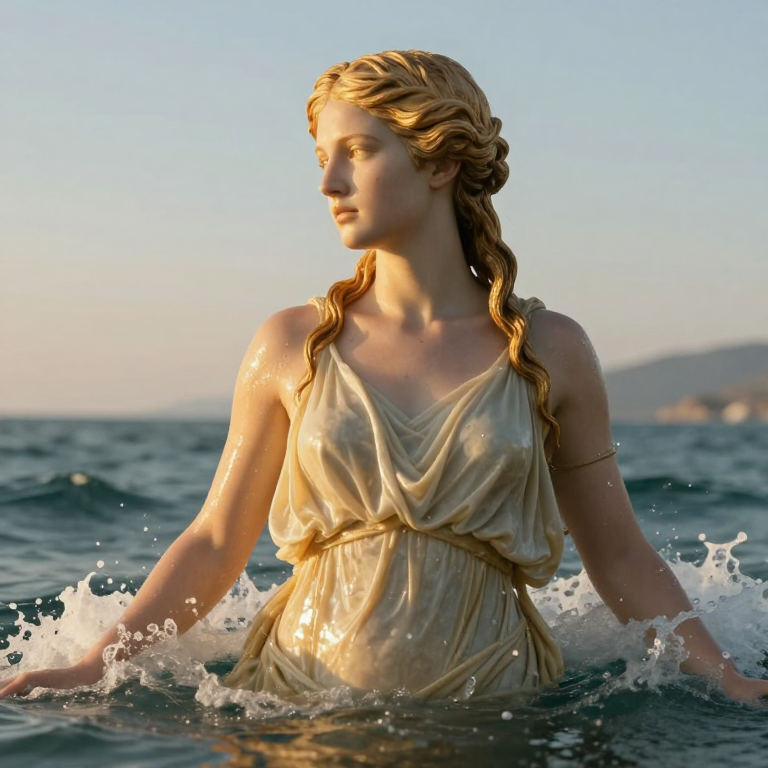 Discover Goddess—Aphrodite rising from in this enchanting page from Adult ABCs's A-Z adventure. Aphrodite rises from seafoam, golden light glinting on her wet hair. Perfect for young readers ages 3-8.