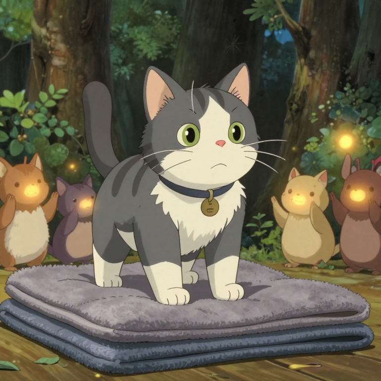 Discover Gymnast in this enchanting page from 🎪 Miji's A-Z adventure. Miji the brave little cat tries a wobbly handstand, cheered on by enchanted forest friends in a cozy, magical room. Perfect for young readers ages 3-8.