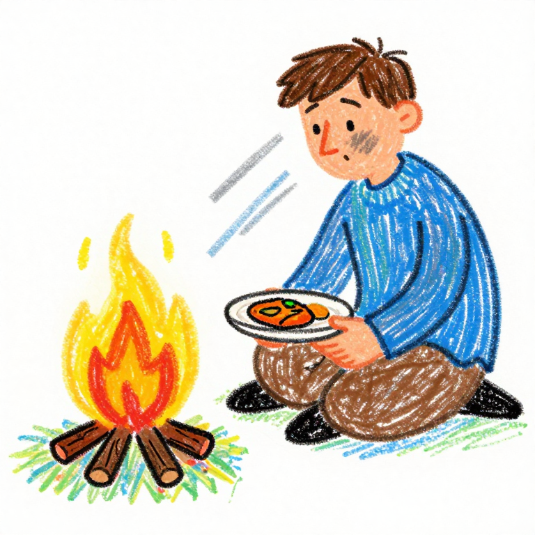 Discover Hunger in this enchanting page from Ined de Sade's A-Z adventure. The fire's glow caresses Ined's weary face, painting shadows of desire and exhaustion in vibrant hues. Perfect for young readers ages 3-8.