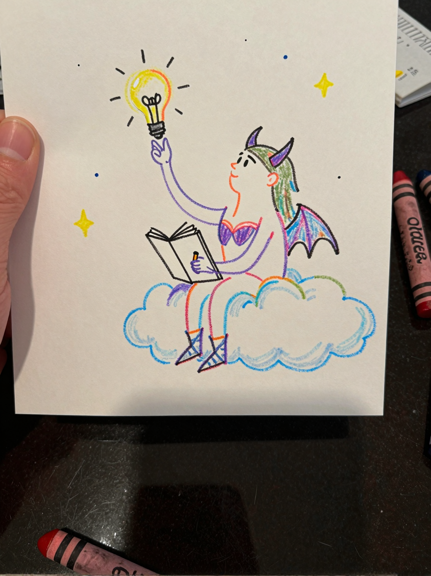 Discover Inspiration in this enchanting page from Olive the Demon Hunter's A-Z adventure. Olive the Demon Hunter dreams of songs in starlight, pencil ready, heart full of magic. Perfect for young readers ages 3-8.