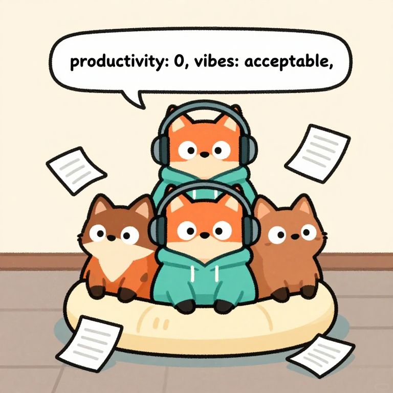 Discover Just Vibes in this enchanting page from Jax's A-Z adventure. Jax the fox floats in a bubble, headphones on, ignoring homework—vibes are perfect. Perfect for young readers ages 3-8.