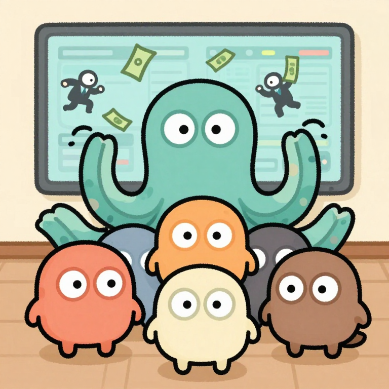 In this enchanting page from DEI's A-Z adventure, we discover Kaleidoscope. Tentacles of chaos ensnare the financial world, as traders drown in a deluge of greenbacks and shattered dreams. This illustration captures the magic of a world on the brink of collapse where creatures c. Young readers will love exploring the letter K while learning about discovery. The curious mood of this page creates a perfect moment for parent-child reading time. Recommended for ages 3-8.