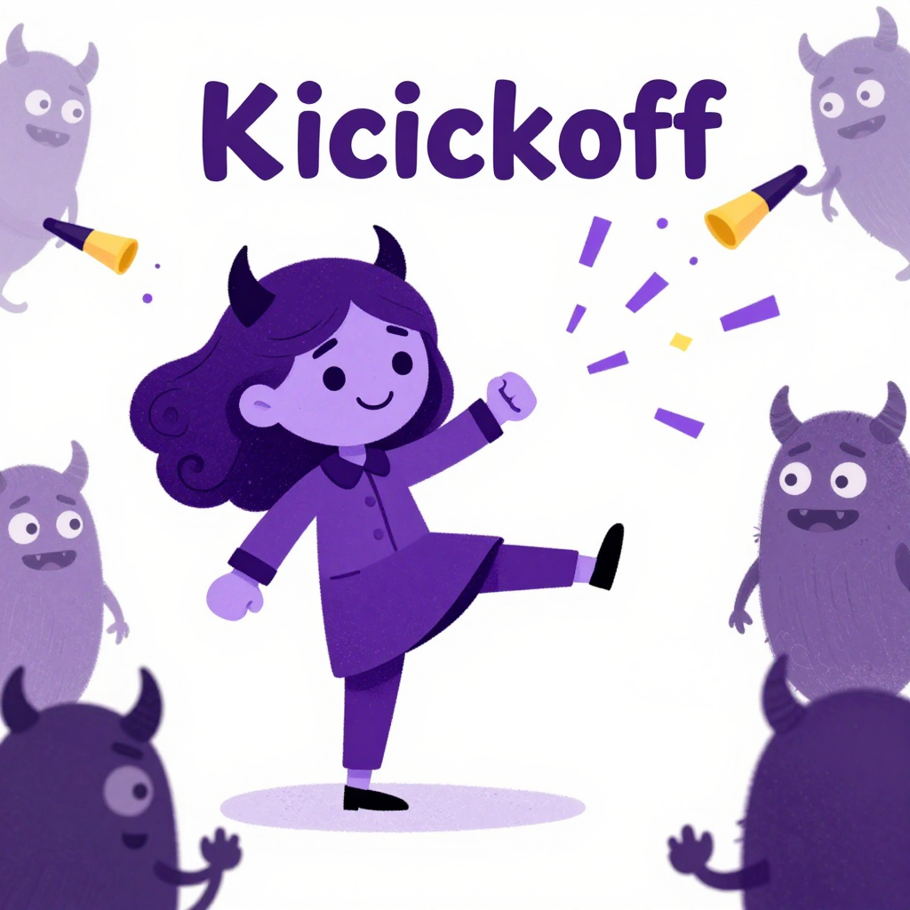 Discover Kickoff in this enchanting page from Olive the Demon Hunter's A-Z adventure. Olive kicks off confetti cannons, scaring away shy demons with rainbow bursts! Perfect for young readers ages 3-8.