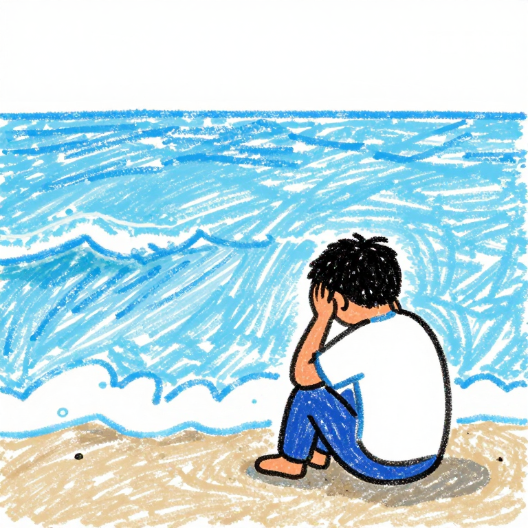 Discover Misery in this enchanting page from Ined de Sade's A-Z adventure. The ocean's endless sighs mirror Ined's tears, as crayon colors bleed into a canvas of sorrow. Perfect for young readers ages 3-8.
