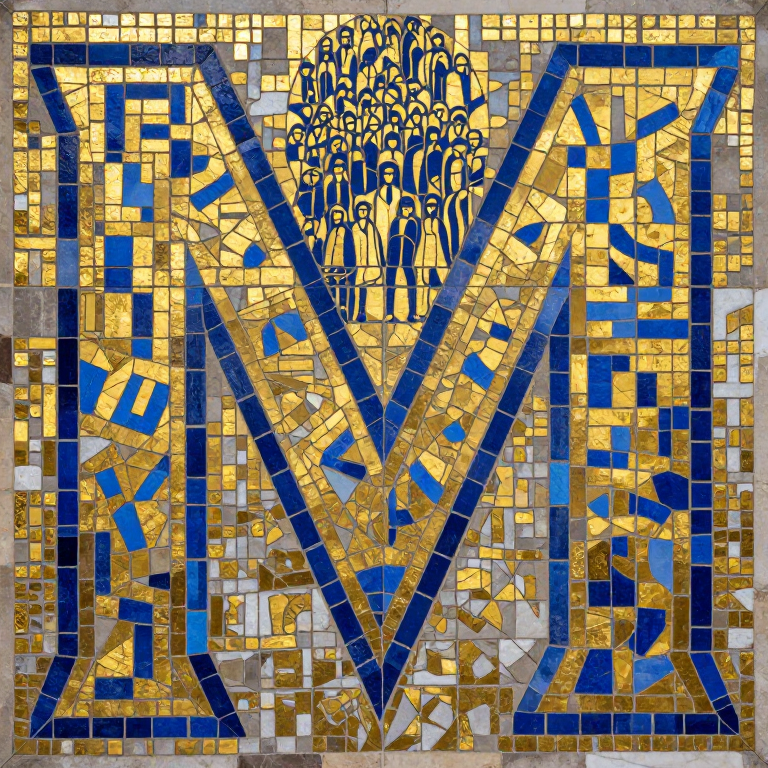 Discover Morphing Mosaic in this enchanting page from The Impossible Alphabet's A-Z adventure. As you step back, tiles whisper secrets, revealing a golden crowd that wasn't there before. Perfect for young readers ages 3-8.