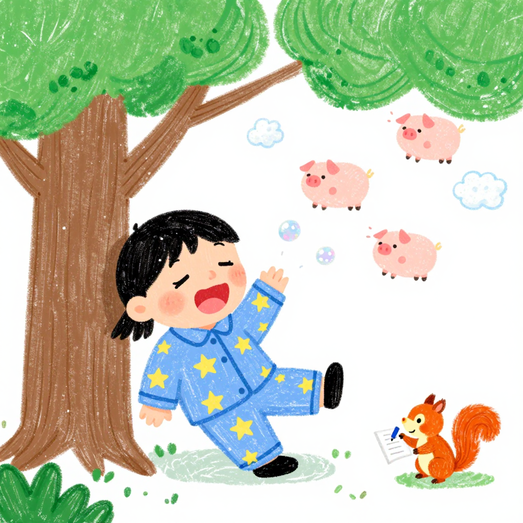 Discover Naptime in this enchanting page from Boronica's A-Z adventure. Boronica snores sleepy stars that turn into puffing cloud-pigs, making squirrels giggle with crayons. Perfect for young readers ages 3-8.