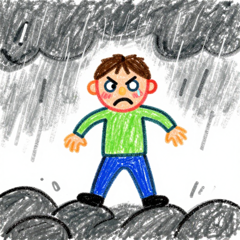 Discover Obstinate in this enchanting page from Ined de Sade's A-Z adventure. Rivulets of rain caress Ined's defiant face as they dance with danger on the slick, colorful rocks. Perfect for young readers ages 3-8.
