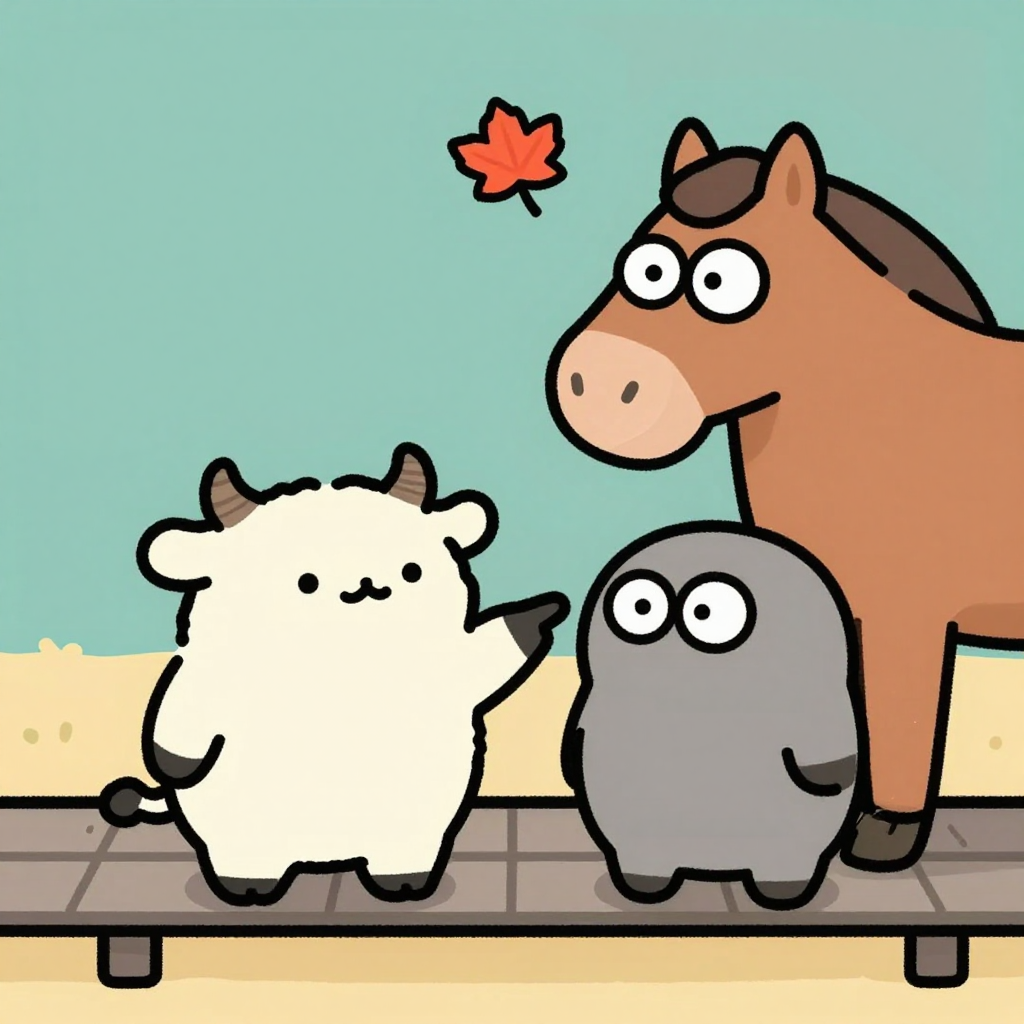 Discover Panic in this enchanting page from µ's A-Z adventure. Panic froze P’s hooves—big, blunt, and bovine—as a red leaf danced down between them. Perfect for young readers ages 3-8.