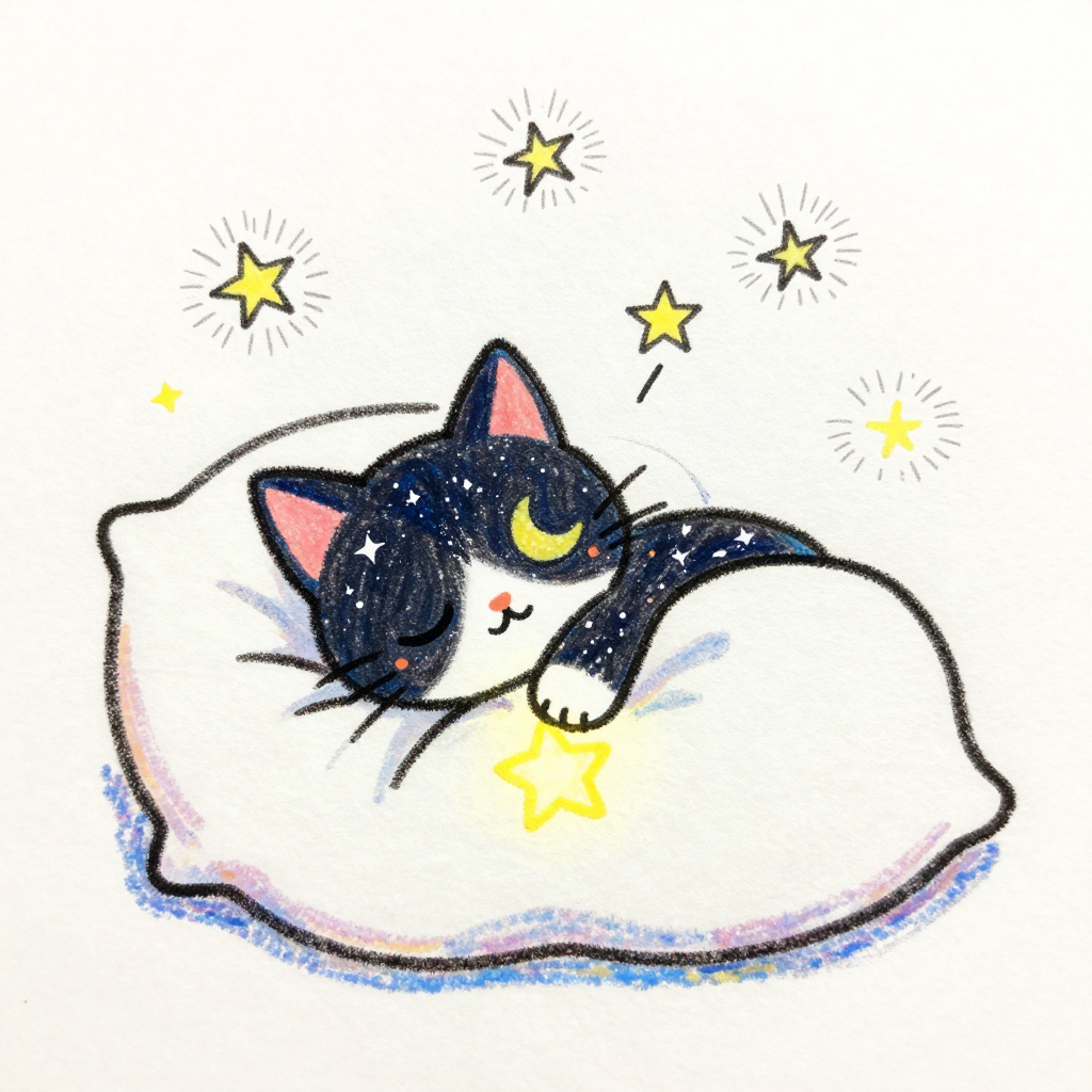 Discover Pillow in this enchanting page from Luna Cray's A-Z adventure. Luna the star-kitten snoozes deep in her pillow, where dreams float up like glowing dandelion fluff. Perfect for young readers ages 3-8.