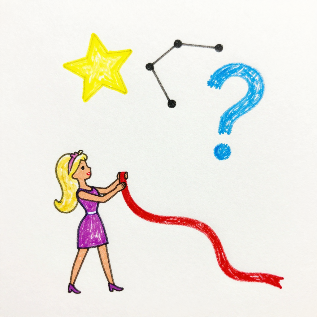 Discover Promise in this enchanting page from Barbie's A-Z adventure. Barbie tied a glowing ribbon around a fading star—its light became a question mark in the night sky. Perfect for young readers ages 3-8.