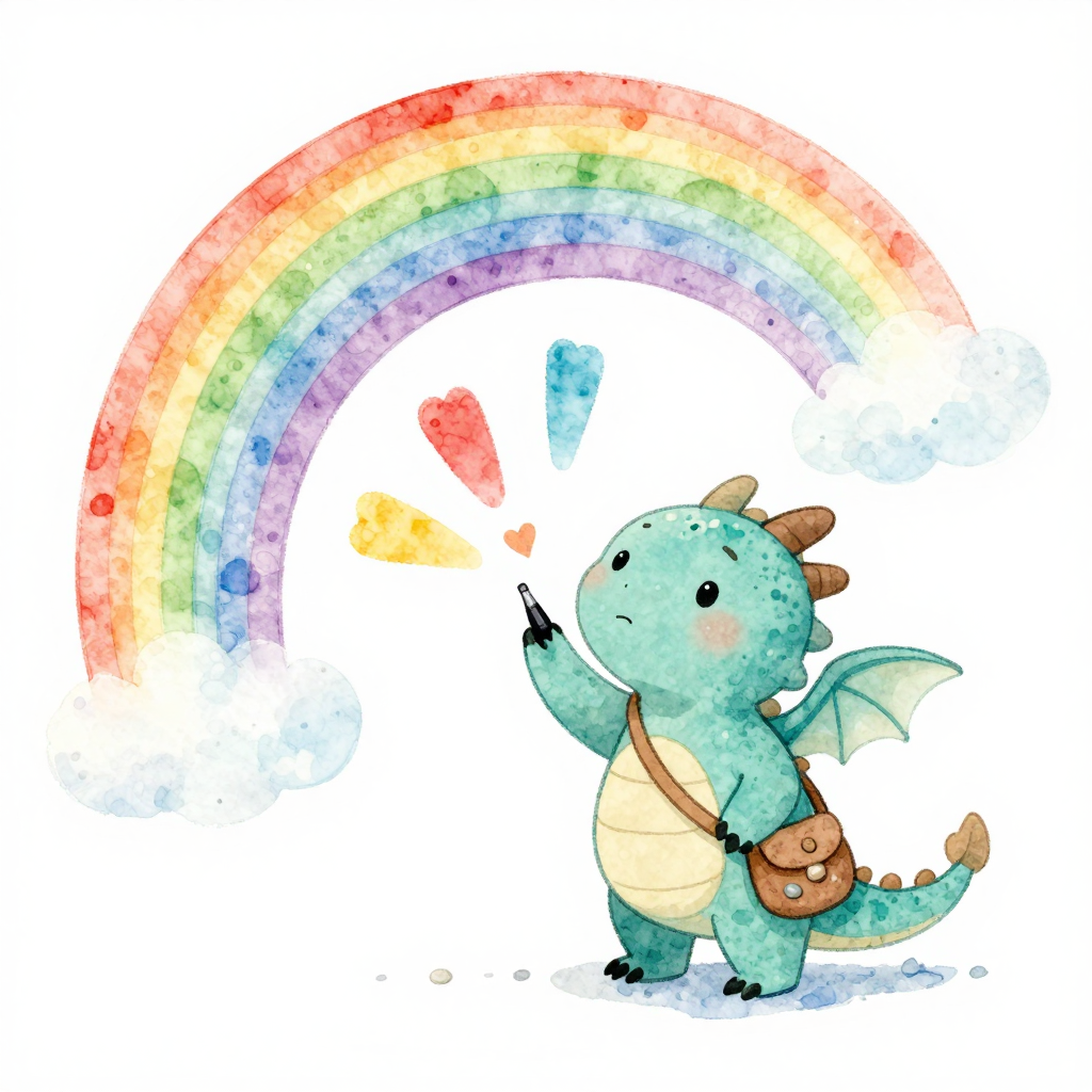 Discover Rainbow Thoughts in this enchanting page from Milo the Worry Dragon's A-Z adventure. Milo’s rainbow thoughts shimmered softly, turning worries into colorful light inside his heart. Perfect for young readers ages 3-8.