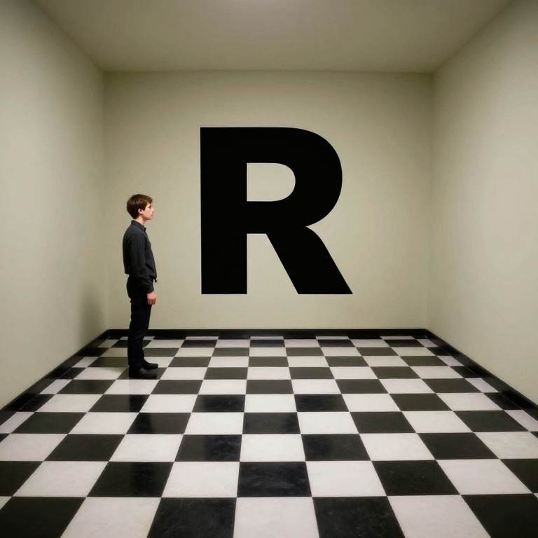 Discover Recursive Room in this enchanting page from The Impossible Alphabet's A-Z adventure. In the Recursive Room, a friend looks tiny on one side and huge on the other, making playtime magical! Perfect for young readers ages 3-8.