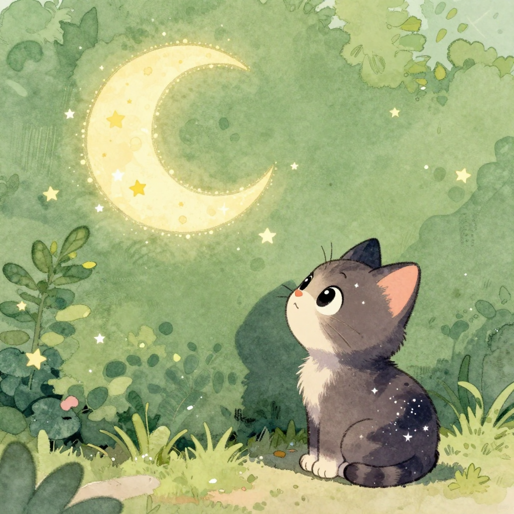 Discover Shadow in this enchanting page from Luna's A-Z adventure. Luna’s shadow danced into a moon, twinkling with stars as she tilted her head, wide-eyed and wonder-filled. Perfect for young readers ages 3-8.