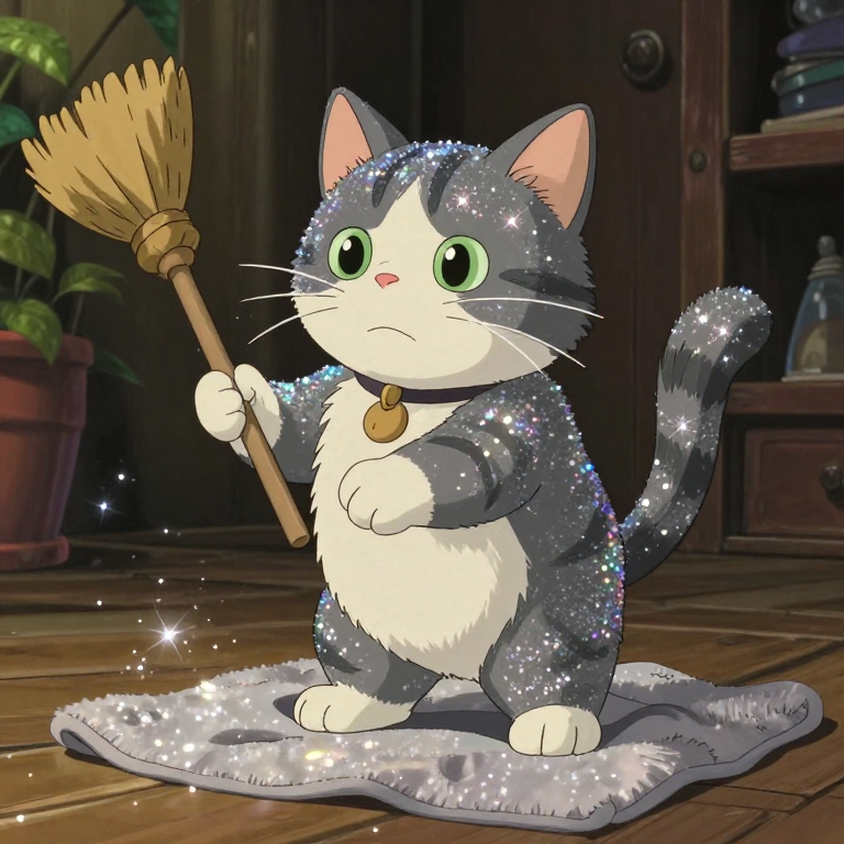 Discover Swing in this enchanting page from 🎪 Miji's A-Z adventure. Miji the munchkin cat sparkles like a star as she twirls in her glittery dance! Perfect for young readers ages 3-8.