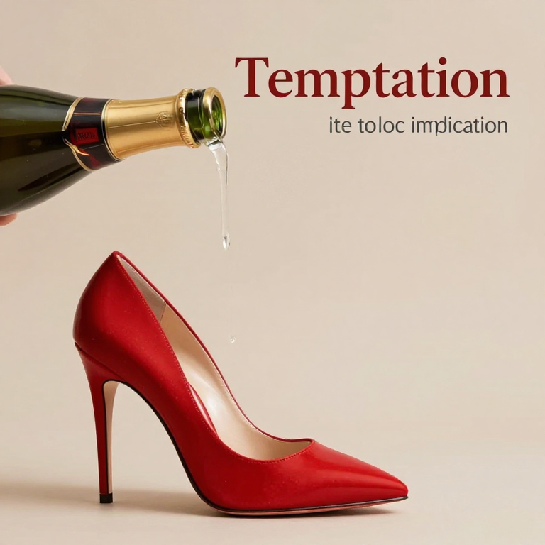 Discover Temptation—a single red in this enchanting page from Adult ABCs's A-Z adventure. A shiny red shoe sits alone, whispering secrets in the moonlight. Perfect for young readers ages 3-8.