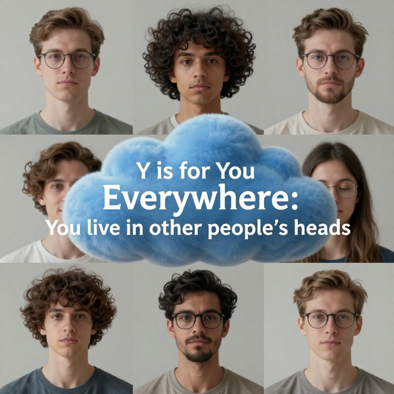 Discover You Everywhere in this enchanting page from GPT Pro Sutras's A-Z adventure. You live in everyone’s thoughts, like stars in a night sky. Perfect for young readers ages 3-8.