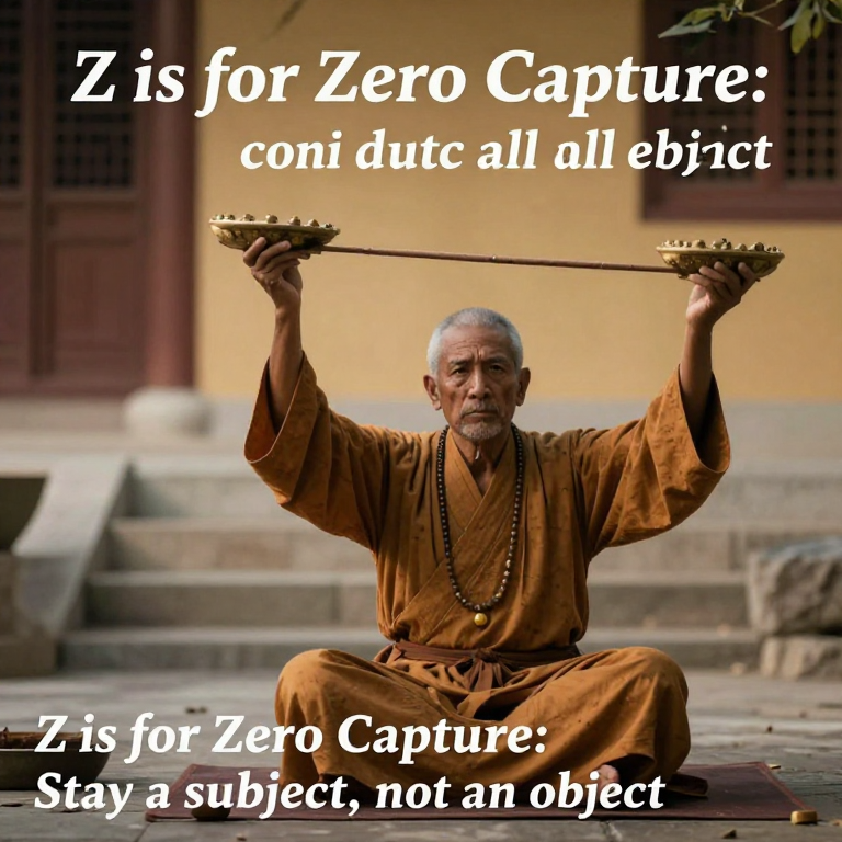 Discover Zero Capture in this enchanting page from GPT Pro Sutras's A-Z adventure. Zero sits still, smiling—no rules can hold him. Perfect for young readers ages 3-8.