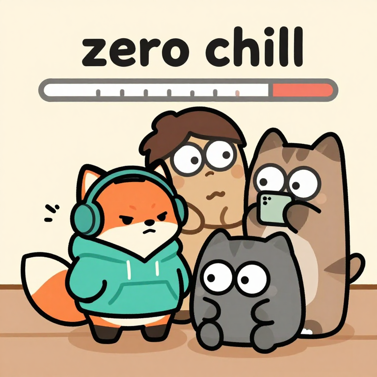 Discover Zero Chill in this enchanting page from Jax's A-Z adventure. Jax the fox rolled eyes as his friend screamed over a crooked selfie—zero chill, but max cuddles. Perfect for young readers ages 3-8.