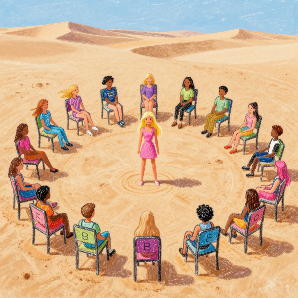 Discover Zone in this enchanting page from Barbie's A-Z adventure. Barbie stands in her chalk circle, wind whispering smiles where friends once sat. Perfect for young readers ages 3-8.