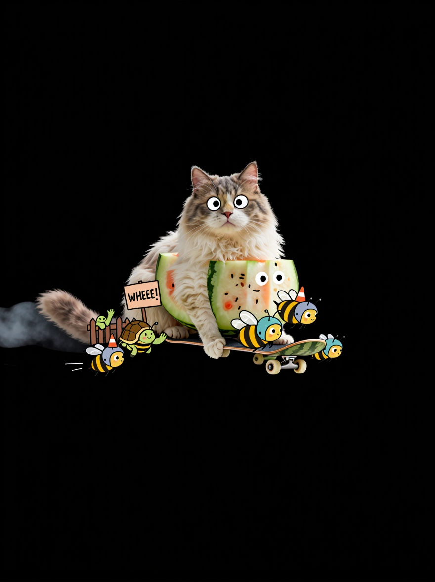 Discover Zoom in this enchanting page from Princey's A-Z adventure. Princey zooms on a melon skateboard, tail flying like a comet, as bumblebees cheer and a turtle waves in a traffic cone hat. Perfect for young readers ages 3-8.