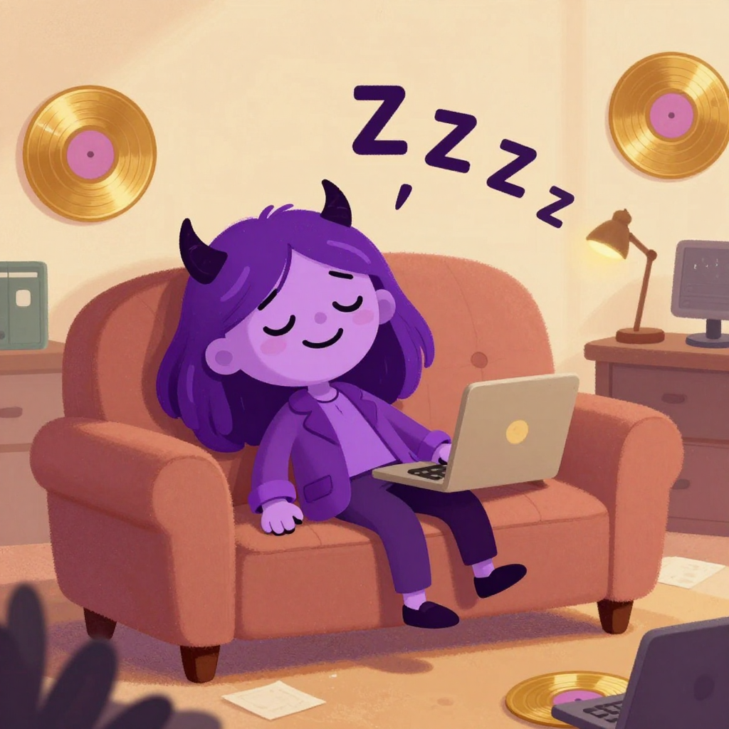 Discover Zzz in this enchanting page from Olive the Demon Hunter's A-Z adventure. Olive, the purple marker girl, snores softly on her couch as ex-demons dream in gold-record bliss. Perfect for young readers ages 3-8.